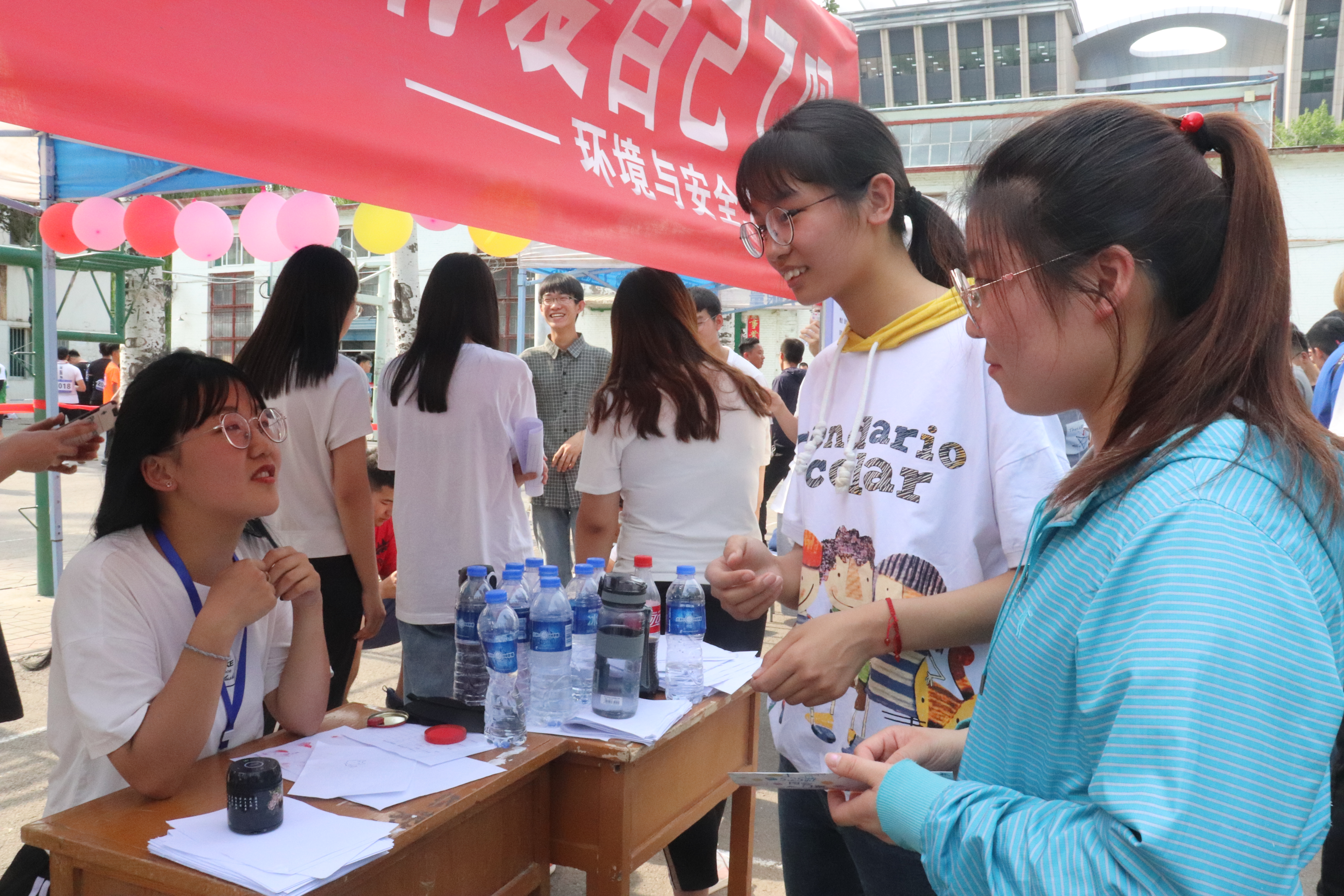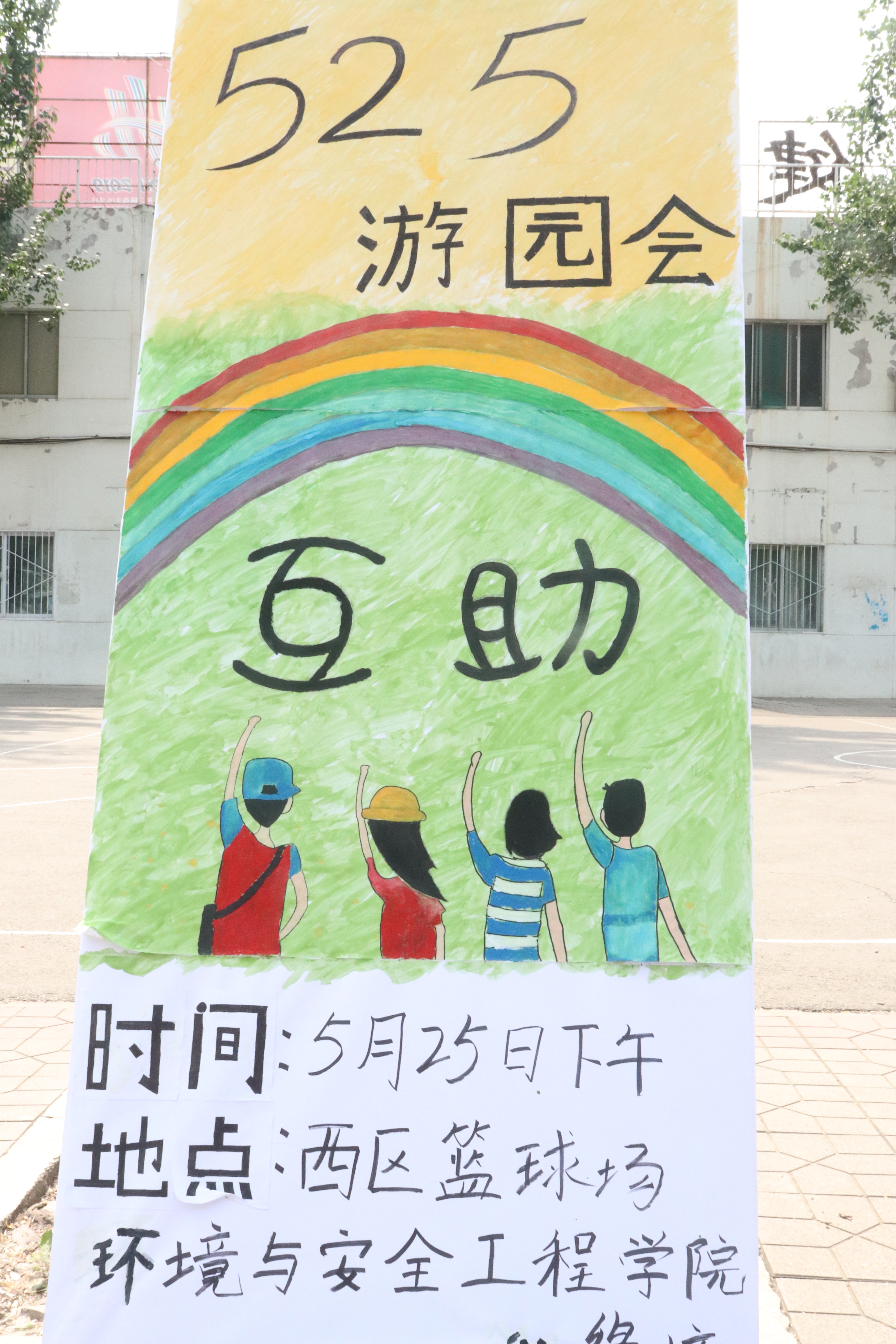 为在广大同学中宣传大学生心理健康日,将心理健康教育融入每位同学的生活中去,给同学们忙碌的学习生活增添一份乐趣,释放压力,培养积极的心态,由校学生处主办仪电院绘心阁承办的第六届“525心理游园会”在5月25日下午三点在西区篮球场展开。环境与安全工程心理站以“互助”为主题,准备了超级大头贴和你画我猜的游戏。