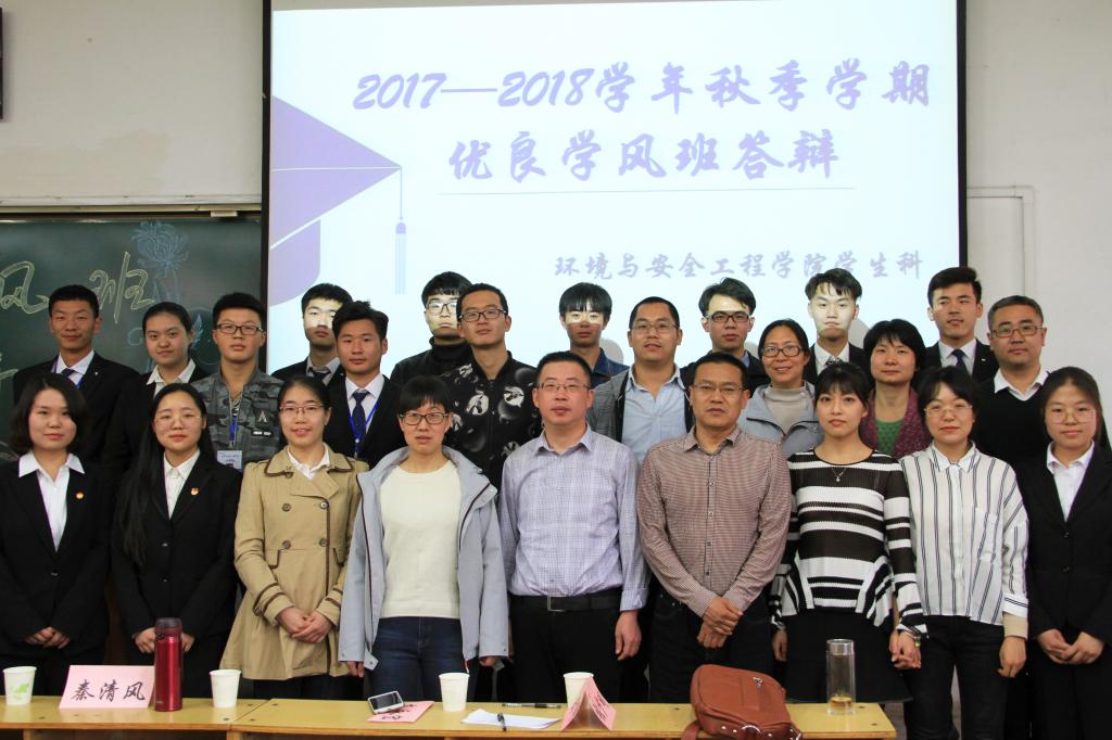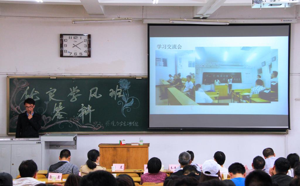 “优良学风班”答辩活动在10104H教室举行,参加答辩的评委老师有张少明副书记、学生科的老师及各班班主任等十余位老师。