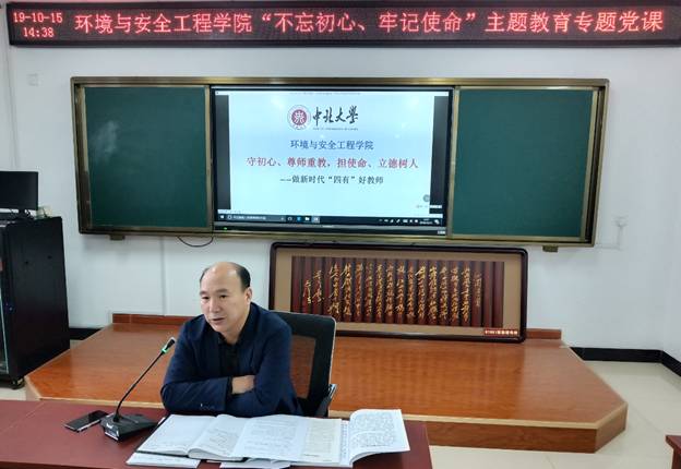 院党委书记赵树森同志在科学楼C座西901以题为“守初心、尊师重教,担使命、立德树人——做新时代“四有”好教师”为欧美巨乳全体党员讲“不忘初心,牢记使命”主题教育专题党课。