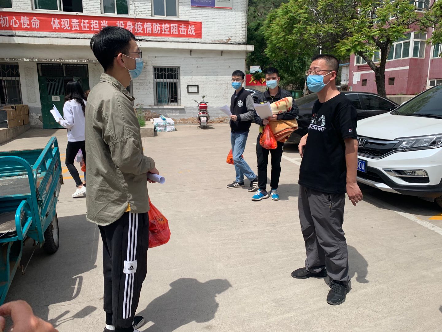 党委副书记张少明,辅导员陈靓、李佳丽、谷磊磊、赵雅欣、张铁成前往学校集中隔离宿舍看望慰问隔离留观毕业生。