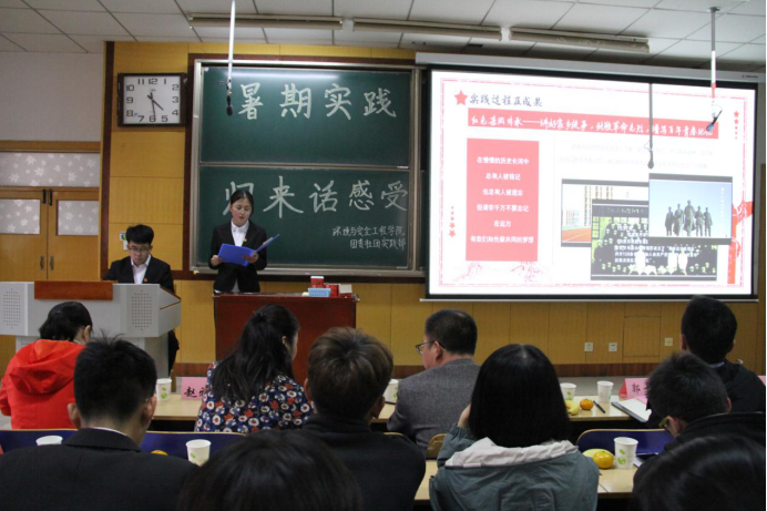在09201H教室举行2020年“暑期社会实践归来话感受”报告会。院党委副书记张少明、院团委书记李佳丽、辅导员赵雅欣、辅导员郭士柱,主要学生干部及欧美巨乳2019级全体学生参加了会议。