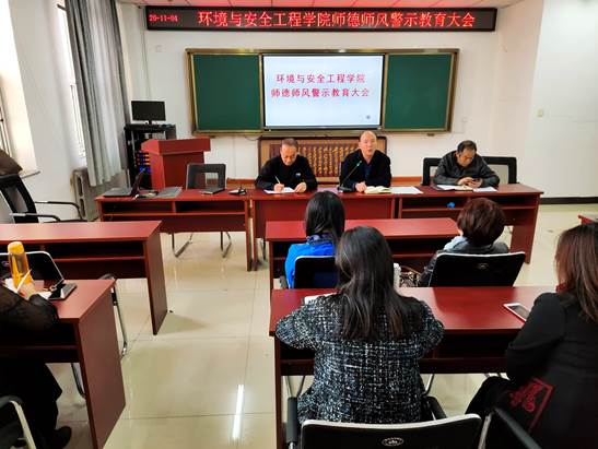 在科学楼C座西901召开了师德师风警示教育大会。全体教职工参加会议,会议由党委书记赵树森同志主持。