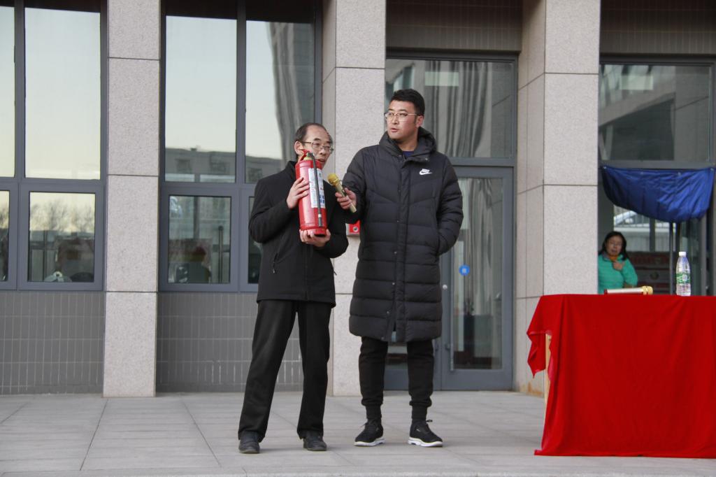 党委副书记张少明主持并发表了讲话,表扬了同学们积极参与本次消防演习的态度和同学们对安全意识的重视,并指出同学们要在日常生活中从主观上重视安全,从客观上杜绝安全事故的发生。讲话结束后,本次演习第二阶段拉开序幕。首先,由校医院副主任医师勾虎平详细讲解了心肺复苏动作要领和注意事项以及应对突发事件处理方法。并邀请学生亲自上台体验心肺复苏全过程。其次由校保卫处安全科科长史志强向同学们讲解了消防“三懂四会”技能,即:懂本单位或岗位火灾的危险性、懂预防和扑救火灾的基本方法、懂自救逃生的方法;会报火警、会使用灭火器材、会扑救初期火灾、会组织人员疏散。并从学生心态、学生思想、逃生方式等方面对本次演习中出现的问题进行点评与指正。最后,在史科长的带领下,同学们亲自体验了使用灭火器的全过程。
