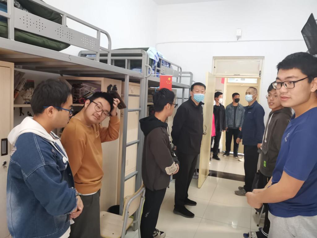 院长王晶禹、校团委书记顾宁、院党委副书记张少明和辅导员,深入学生宿舍开展疫情防控安全教育。