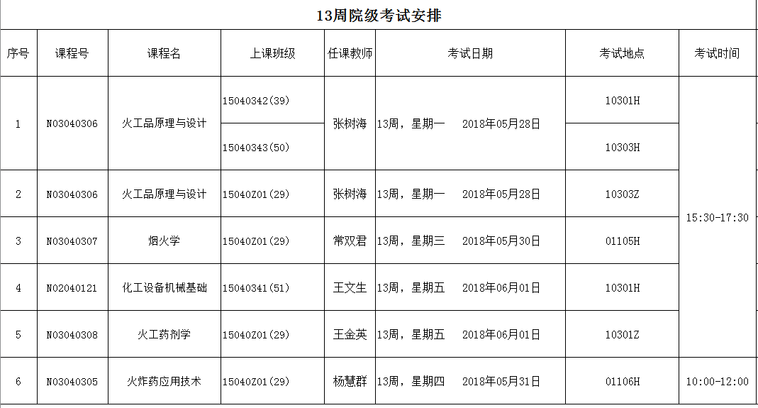 13周院级考试安排