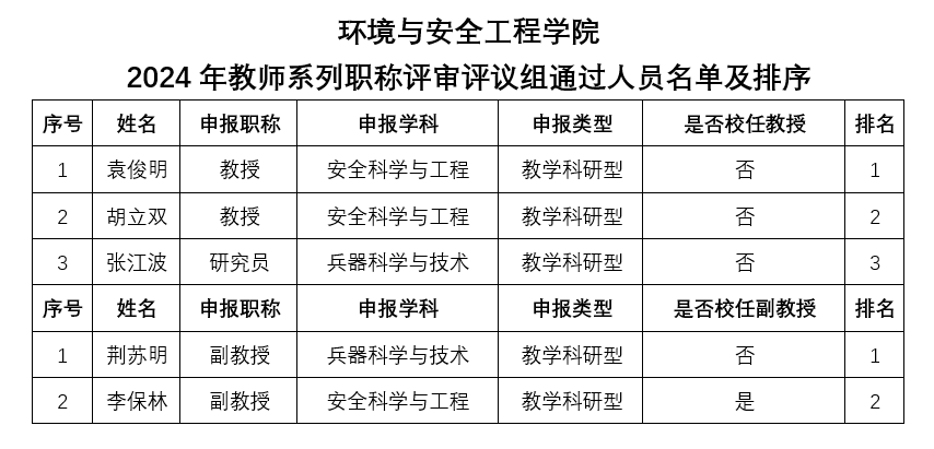2024年11月29日下午,在新能源化工研究院大楼A座314会议室召开2024年欧美巨乳 评议组会议,对申报正常晋升教学科研型副高级职务进行评审,对申报正常晋升教学科研型正高级职务人员进行推荐排序。现将推荐人员及排序进行公示,公示期5个工作日,如有问题请联系综合办公室陈亚芳老师。